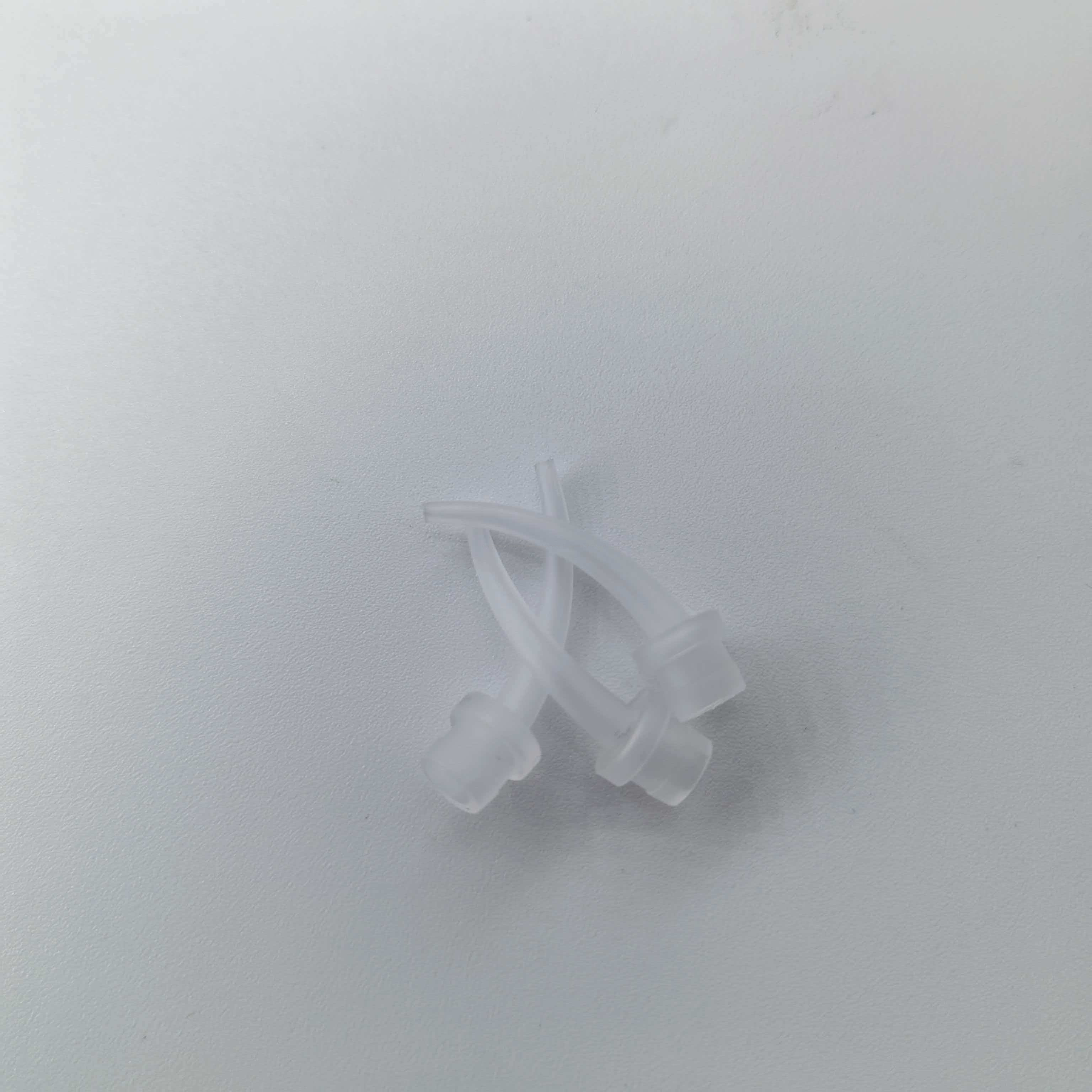 This disposable mixing tip attaches to dental mixing tubes. Its tail precisely fits the tube outlet for a tight lock, preventing material leakage.