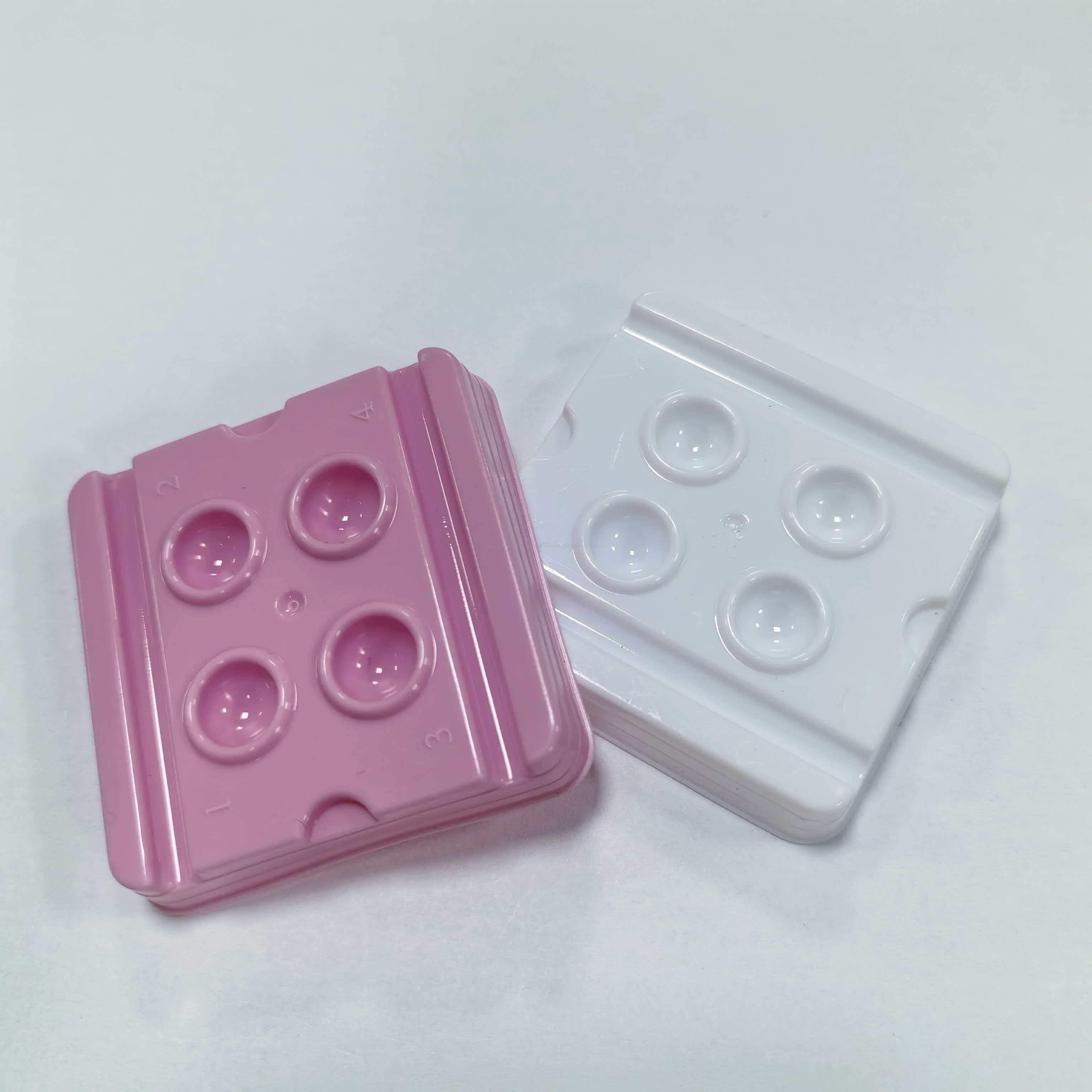 This disposable 4-hole mixing dish is designed for small-dose multi-material mixing. Featuring 4 numbered independent grooves, it can hold/mix 4 different materials simultaneously with clear partitioning and no cross-interference, perfectly meeting "small-dose multi-material" operation needs. The numbered markers next to each groove correspond to different materials/steps to avoid confusion-especially suitable for multi-component materials requiring sequential mixing. Made of disposable plastic, it's discarded after use with no cleaning or disinfection needed. Stackable for space-saving storage, it's ideal for bulk stockpiling in clinics and beauty institutions.